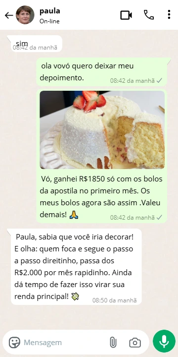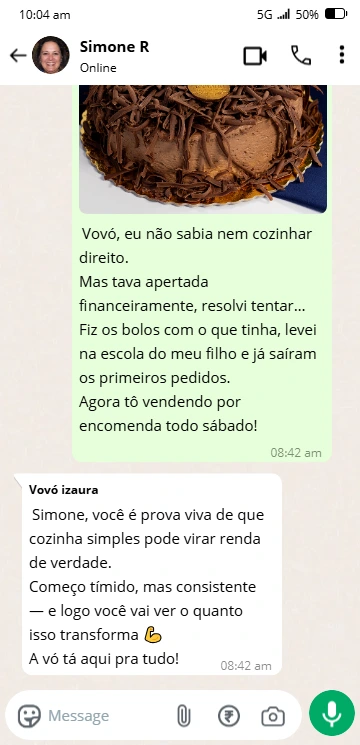 Hoje, compartilho esse tesouro com milhares de pessoas que, assim como você, querem transformar ingredientes simples em bolos incríveis — e faturar com isso também. Você pode ser o próximo!